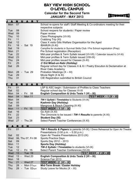 O level Campus Calendar Bay View High